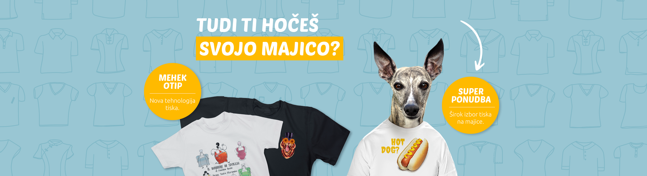 Potiskamo lahko skoraj vse vrste grafik na skoraj vse vrste tekstila. Pri nas najdete ideje in rešitve, ki jih potrebujete zase, za svoje zaposlene ali najdražje za vse priložnosti, tako formalne kot neformalne. Nudimo vam pripravo in oblikovanje za tisk na majice, drese in ostala oblačila ter drugi tekstil. Potiskamo vam tudi kape, športne torbe, delovna oblačila, otroške bodije ali tudi spodnje perilo. Tiskamo na vse, kar si lahko zamislite. Tudi na umetniško platno in ostale materiale, kot so platnene vrečke, dežniki, brisače ter ostali promocijski materiali. Nudimo razrez samolepilne folije, z manjšo grafiko polepimo avto ali izložbo, natisnemo vizitke, vinske etikete raznih oblik, dopise, blokce in ostale tiskovine. Ne verjamete? Pokličite nas in se prepričajte.